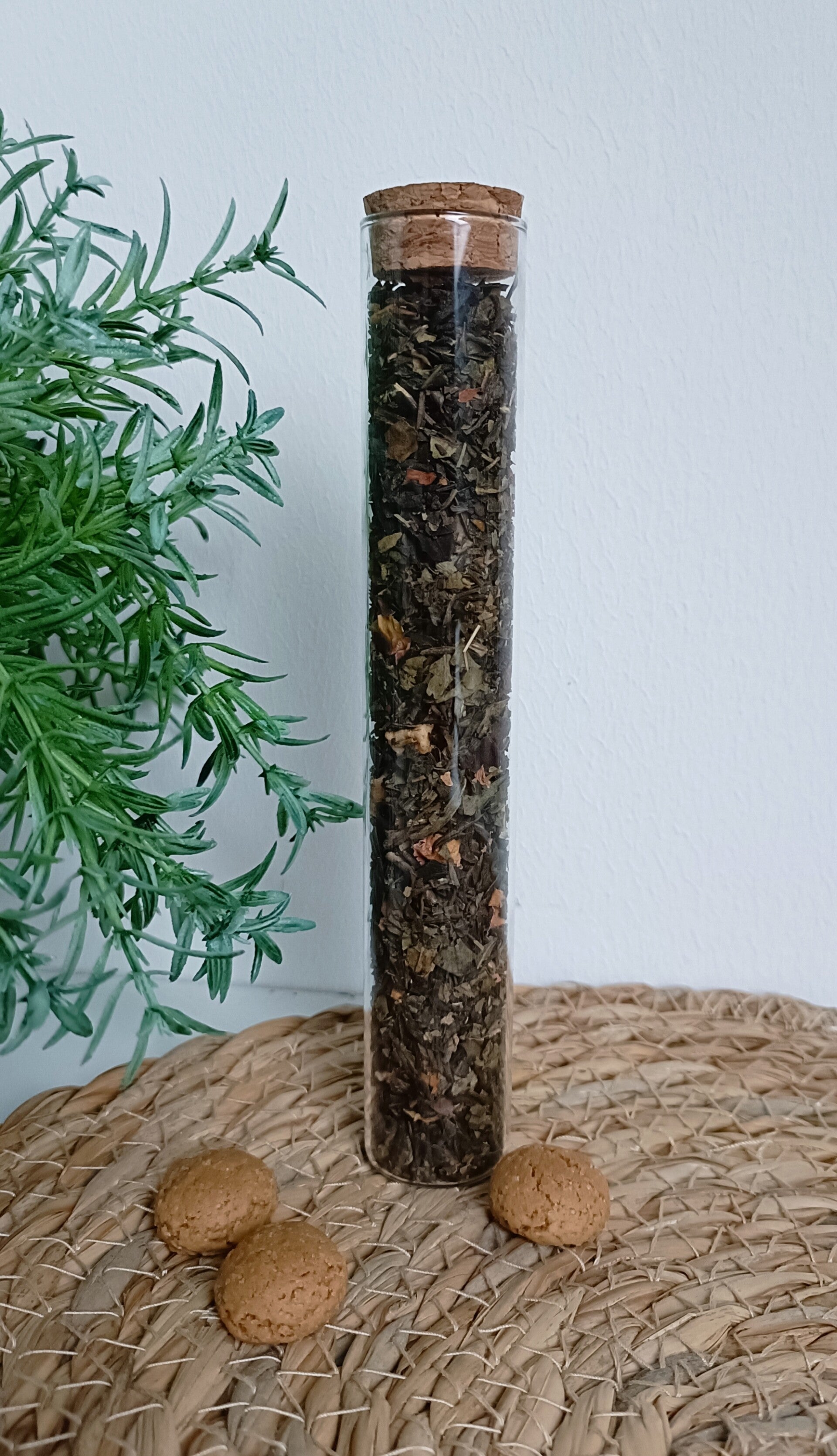 De tube wordt geleverd met twee theezakjes. De mogelijkheid is er om deze met een label aan de tube te bevestigen met daarop een naam of korte boodschap.